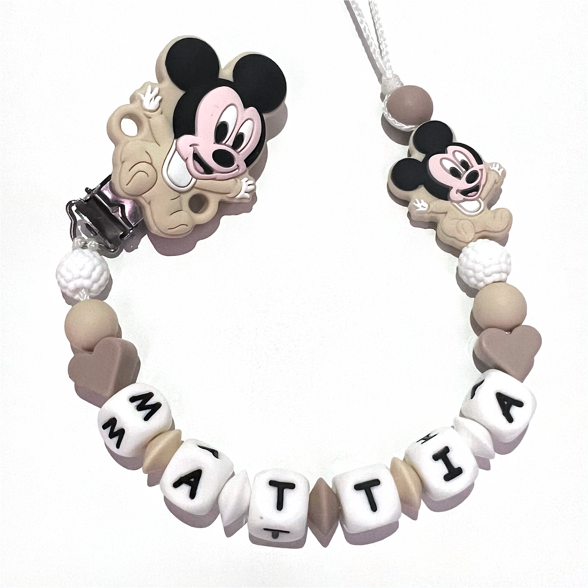 Catenella Portaciuccio Happy Topolino, Portaciuccio con Nome, Catenina in Silicone, Porta Ciuccio Personalizzato