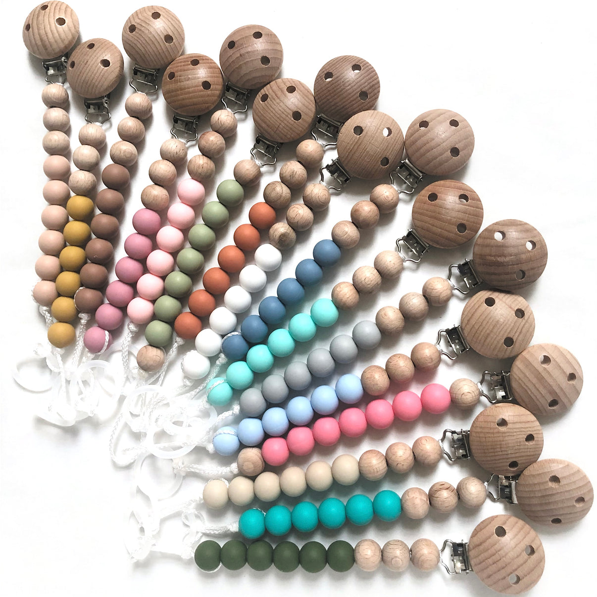 Catenella Portaciuccio non Personalizzata, Catenina in Legno e Silicone, Porta Ciuccio Leggero, Catenella per Neonato